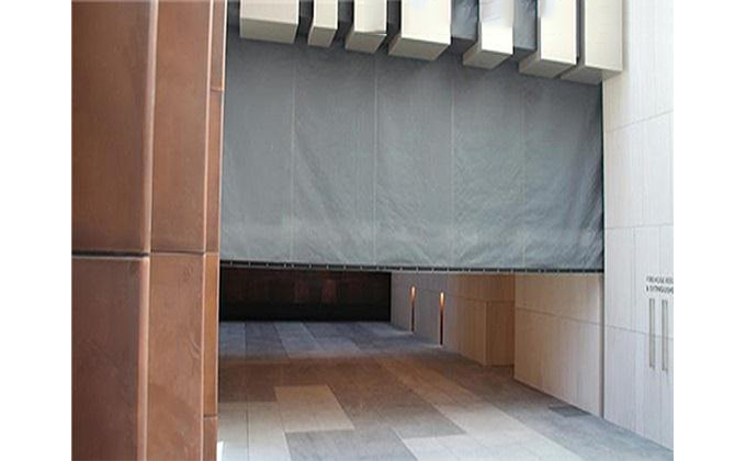 擋煙垂壁是人防工程和高層民用建筑的地下與大空間排煙系統(tǒng)中作煙區(qū)分隔的裝置。當(dāng)消防控制中心發(fā)出火警信號或直接接受“煙感”信號后,置于吊頂上方的軟質(zhì)擋煙垂壁迅速垂落至設(shè)定高度,形成煙區(qū)分隔。由排煙風(fēng)機(jī)將高溫?zé)煔馀懦鍪彝猓瑸榛鹁瘏^(qū)人員救生和疏散創(chuàng)造了環(huán)境和爭取了時間。擋煙垂壁可安裝在裝飾吊頂內(nèi),隱蔽性好;具有三套驅(qū)動系統(tǒng):電動驅(qū)動、備用電源驅(qū)動,能保證在任何緊急狀態(tài)下的正常使用。執(zhí)行標(biāo)準(zhǔn):GA533-2005